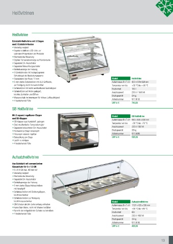 Mit 2 separat regelbaren Etagen Modell SB Heißvitrine