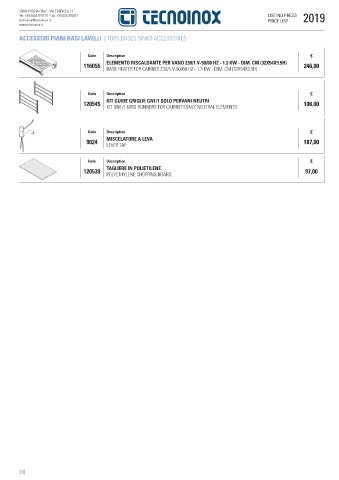 tecnoinox@tecnoinox.it PRICE LIST