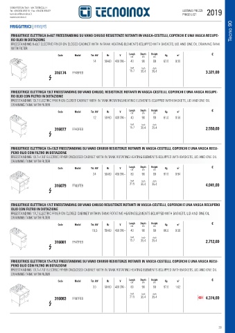 FRIGGITRICE ELETTRICA 13LT FREESTANDING SU VANO CHIUSO, RESISTENZE ROTANTI IN VASCA-CESTELLI, COPERCHI E UNA VASCA RECUPE-